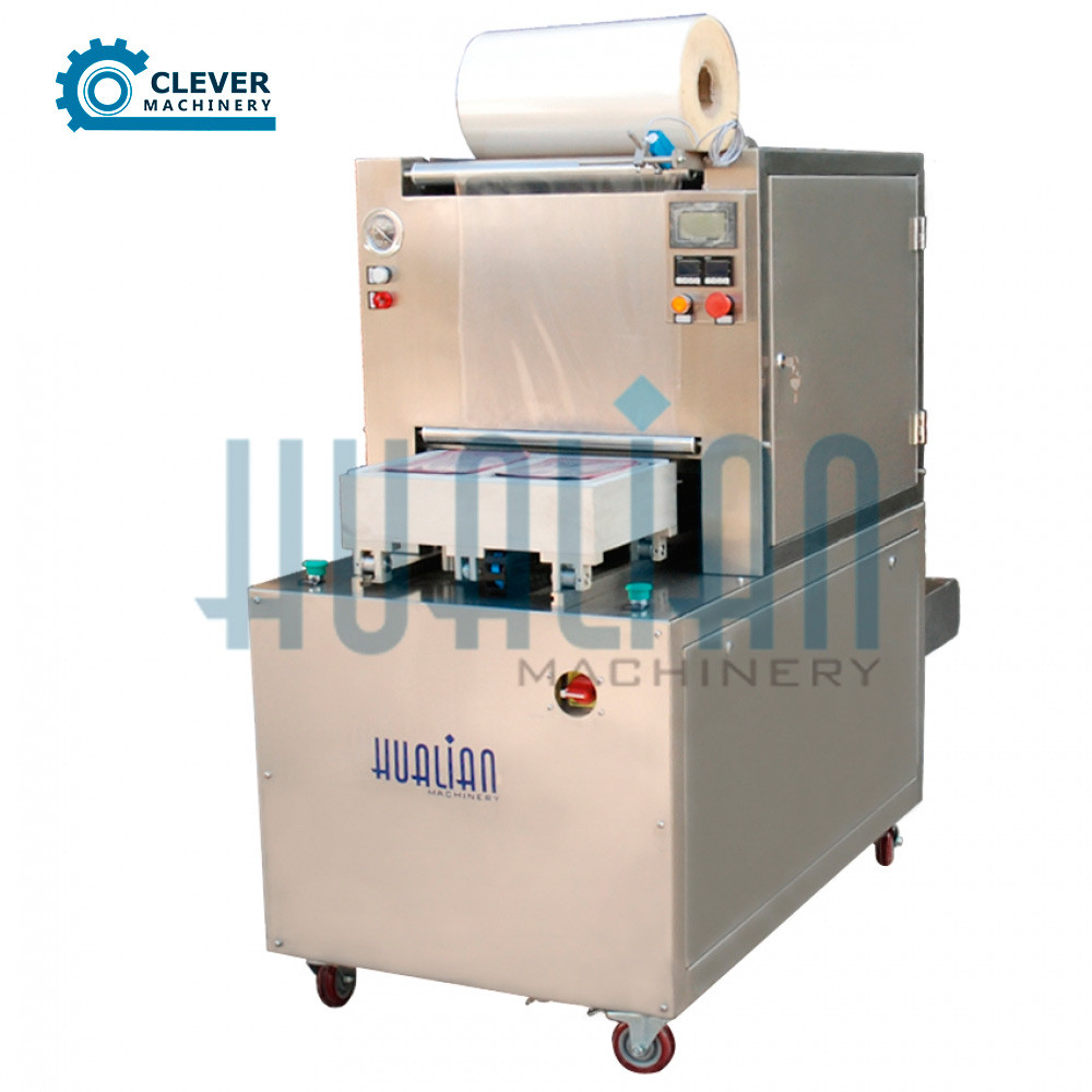 Максимальна ширина плівки 550 мм, відповідно робочий розмір матриці 550х600 мм. Машина виконує автоматичний цикл пакування в такій послідовності: оператор поміщає лоток у матрицю, матриця рухається в пачку, де відбувається відкачування повітря, камера заповнюється газом, відбувається запаювання й обрізання плівки за контуром лотки, далі матриця повертається у вихідне положення. Розміри лотка передбачаються заздалегідь, якщо потрібно запаювати кілька різновидів лотків, тоді потрібно замовити додатковий комплект матриць. У машині передбачений фотодатчик, що дає змогу працювати з кольоровими плівками. Для підвищення продуктивності можливе встановлення вакуумного насоса більшої потужності.