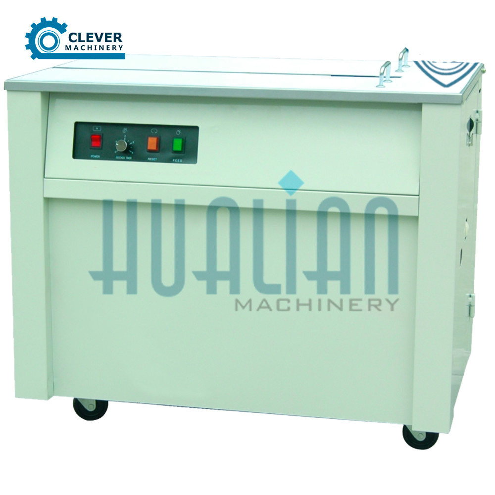 Призначений для обв'язування поліпропіленовою стрічкою коробок, пластикових контейнерів, книг та інших предметів круглої, квадратної або циліндричної форми. Машина напівавтоматична для обв'язування предмета потрібно вільний кінець стрічки подати в пристрій і машина створить потрібне натягування і зварить стрічку. Ця модель призначена для загального використання. Бобіна зі стрічкою встановлюється в корпус машини, що захищає стрічку від пилу та сміття і скорочує габарити машини. Для заощадження електроенергії та збільшення ресурсу машини передбачена функція автовимкнення.